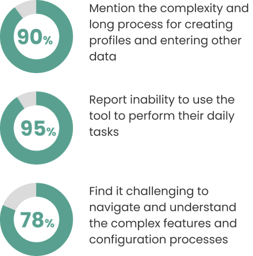 The product had a cluttered interface, making it difficult for users to navigate and find essential features. The product's pre-configured workflows do not align with users' work processes and lack customization options, making it less engaging and user-friendly.