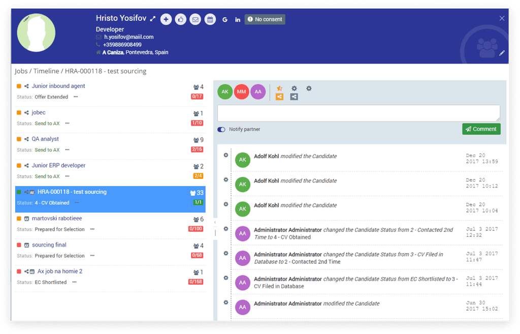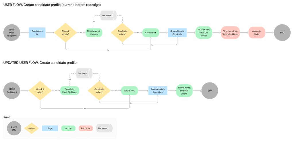 By carefully designing the user flow and removing obstacles (for instance easy Candidate profile creation, or a way of tracking and moving candidates through the project pipeline), we increase the overall product use.